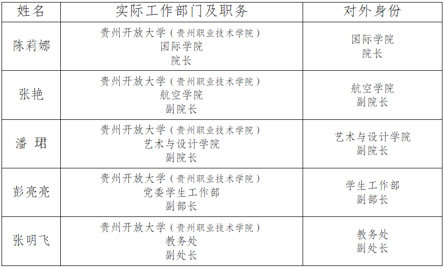 根据中央、国务院出台的因公出国(境)管理工作有关规定,现对贵州开放大学(贵州职业技术学院)陈莉娜等5名同志2025年9月份赴老挝、泰国团组实际执行情况公示如下: